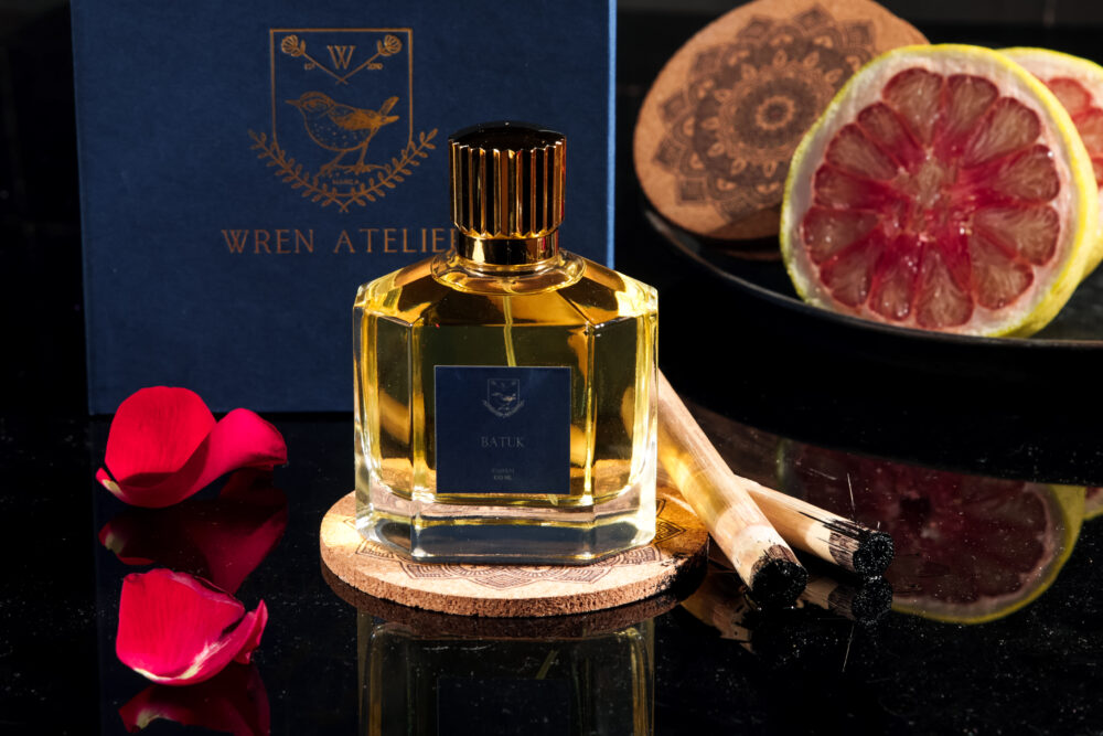 Batuk is a fragrance inspired by the ancient art of traditional tattooing, known as ‘batok.’ A tribute to the cultural heritage of the indigenous people of Kalinga. Using pomelo thorn needles, bamboo sticks, and a coconut mixing bowl, the ink – composed of coal and water – brings to life a deep heritage. The scent aims to evoke the journey to the remote places where the mambabatok tribe resides, capturing the essence of history, craft, and the enduring spirit of tradition.