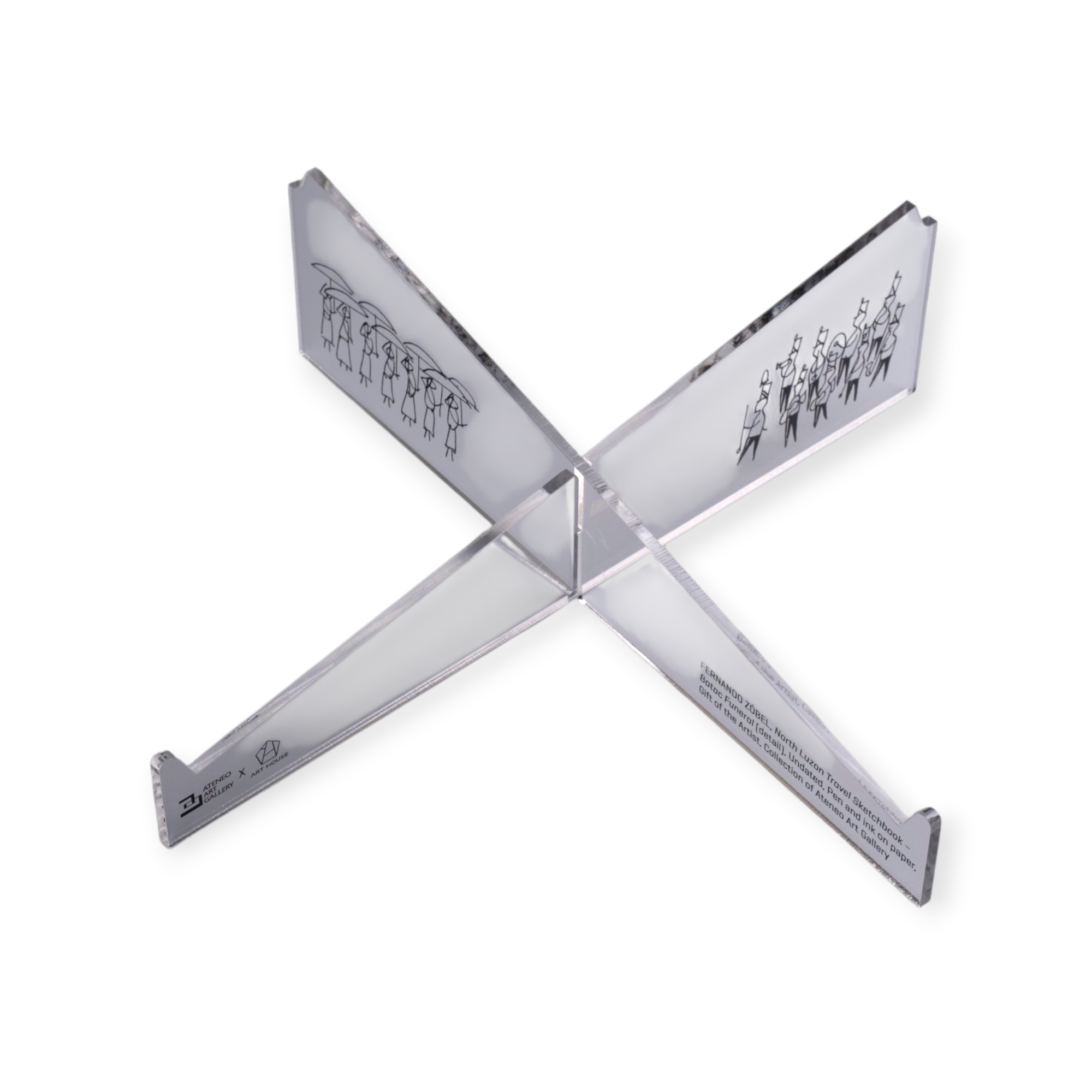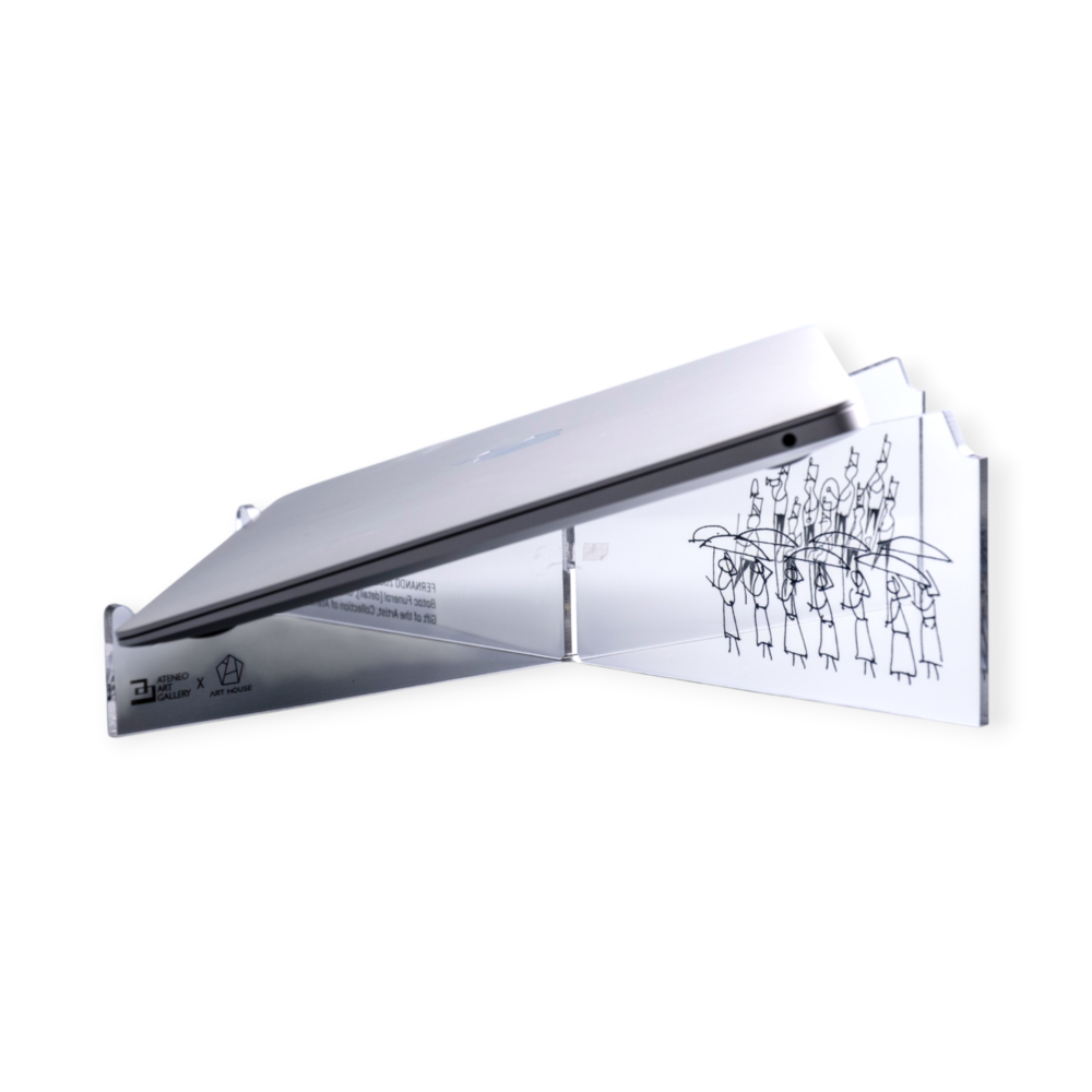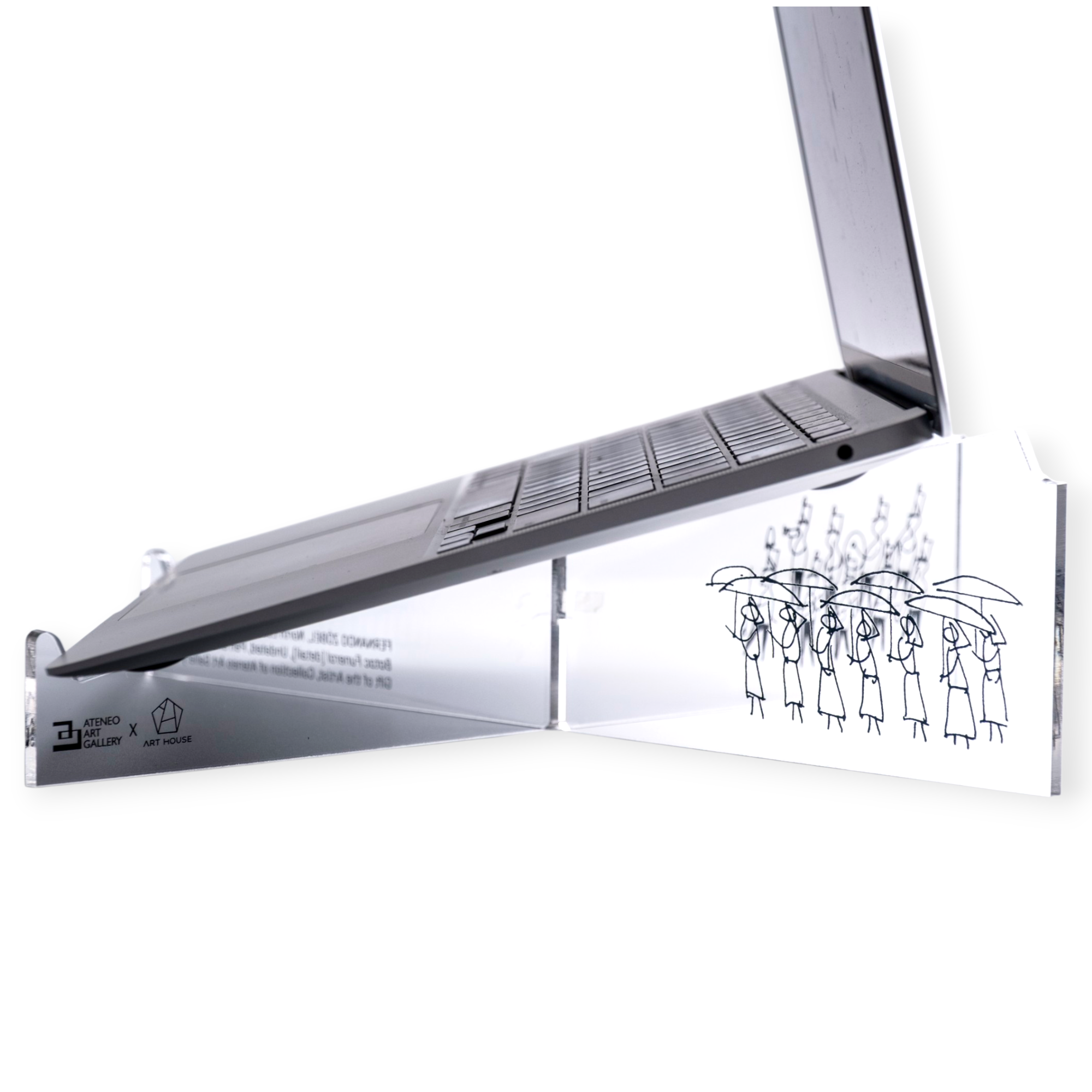 Where form meets function, this clear acrylic laptop stand transforms your workspace with Batac Funeral, a travel sketch by Fernando Zóbel. Merging everyday utlity with the artist’s mastery of abstraction, it’s a striking blend of design and inspiration-perfect for art lovers and modern creatives alike.