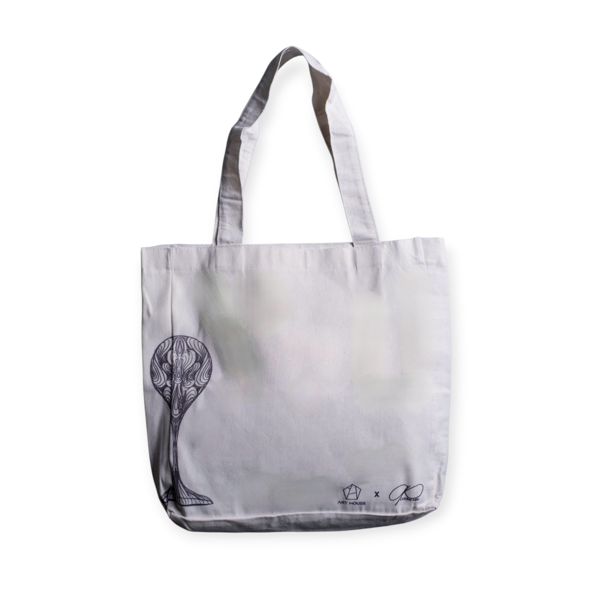 Inspired by Leeroy New’s Elemental Pods and featuring the artist’s signature aesthetic, this minimalist tote combines function with artistic flair.