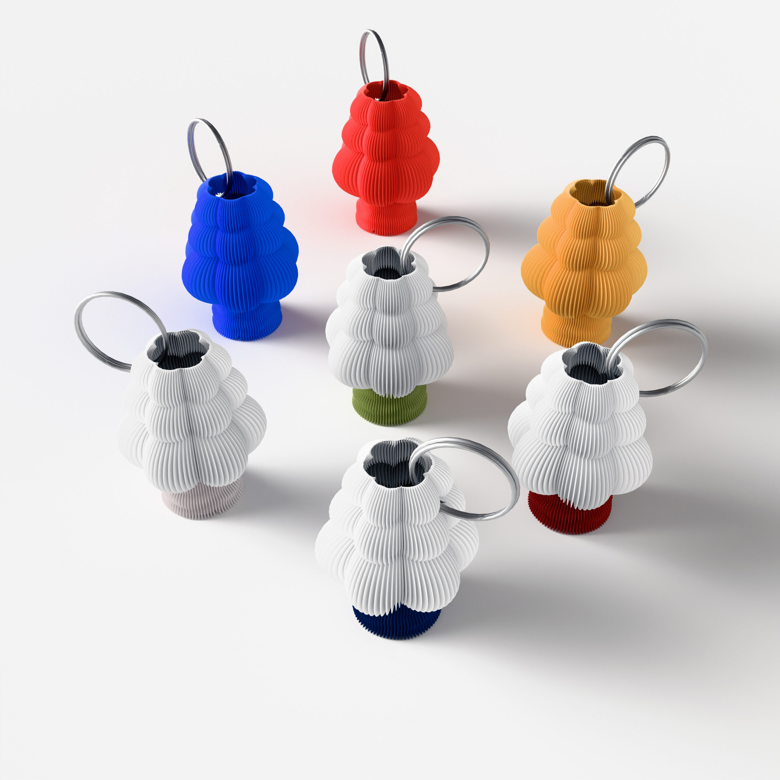 The Mini Sora is a compact evolution of the original Sora Lamp, capturing its soft, weightless form in a keychain-sized version. Inspired by the jellyfish’s quiet resilience, it channels a sense of calm and fluidity through its gentle curves. The Sora form reflects the designers’ shared focus on balance, softness, and timeless design.