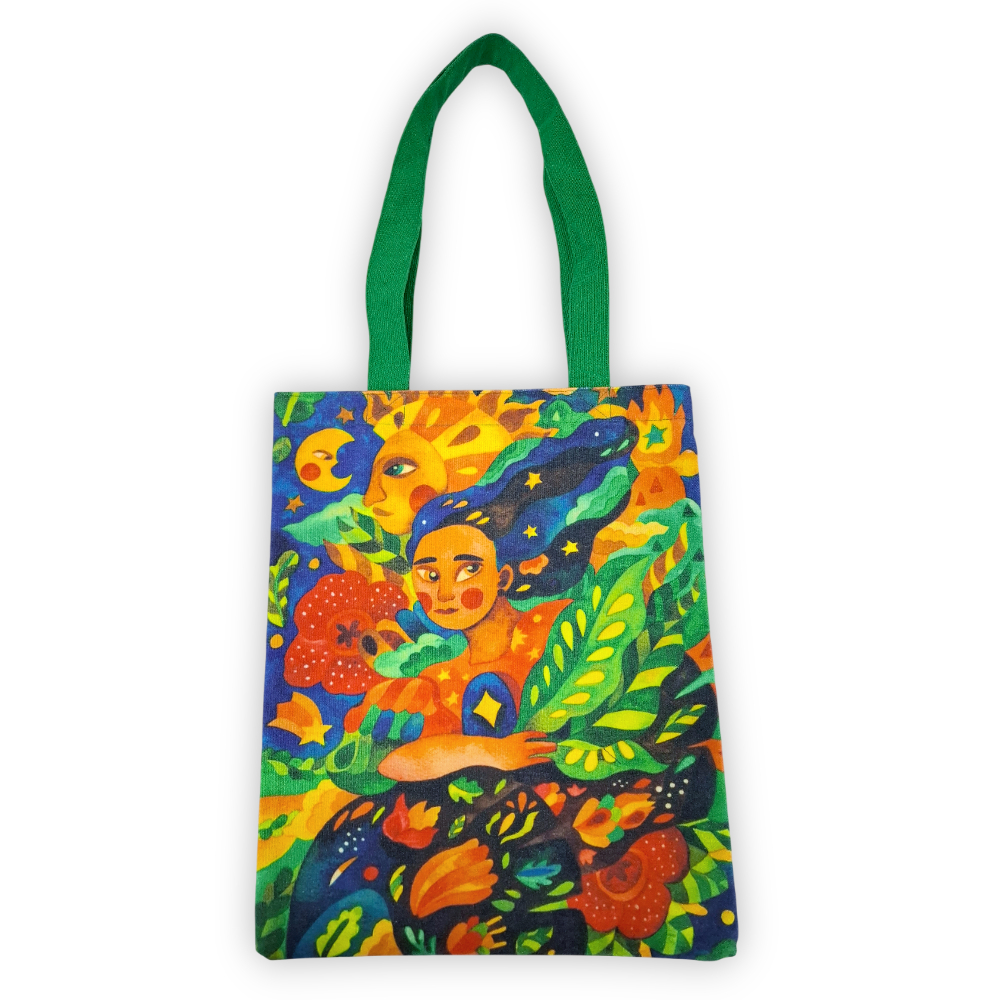 Take flight with Pagmaya featuring Dani Florendo, a canvas art tote bag showcasing Dani’s watercolor painting ‘The Wanderers Flight’, designed in collaboration with Looking for Juan.